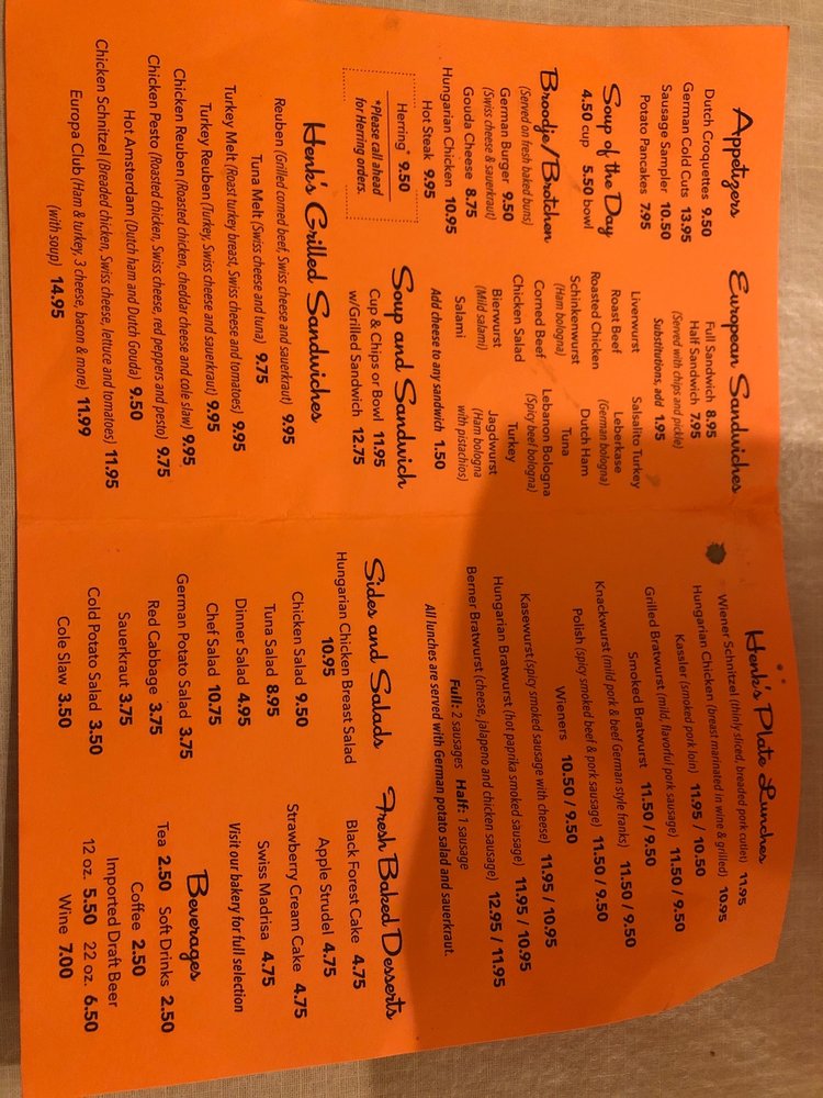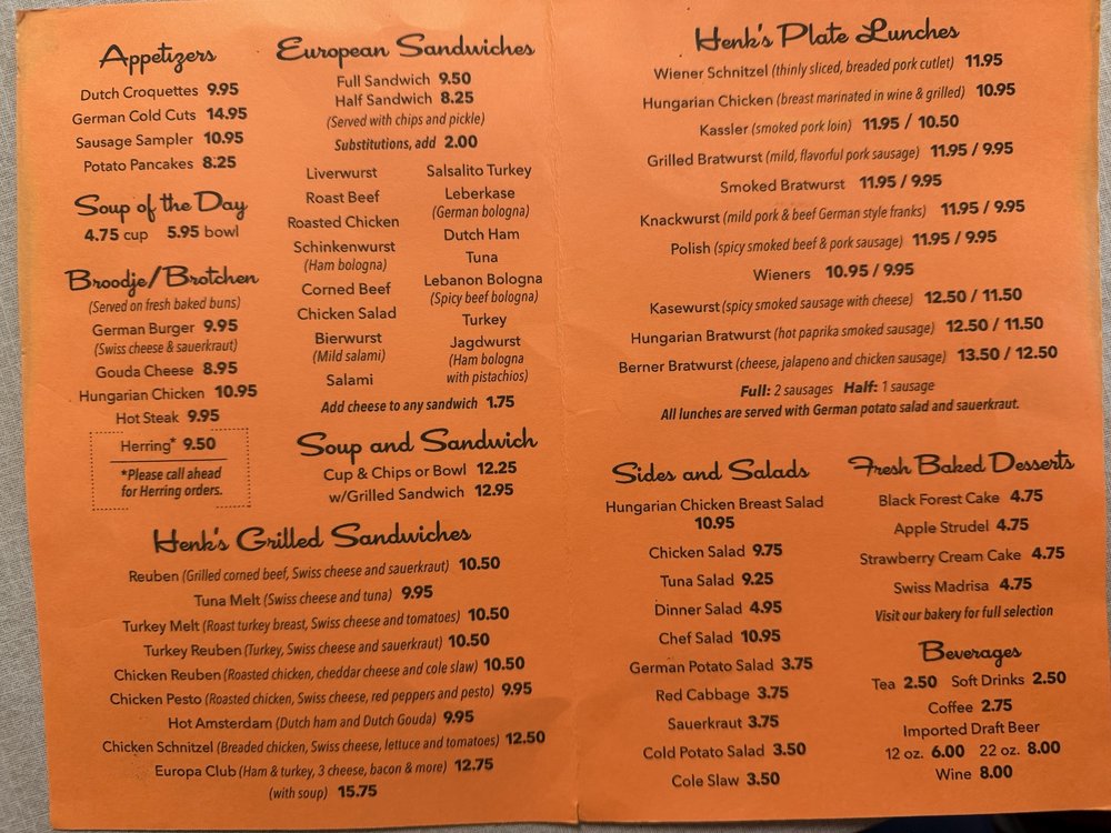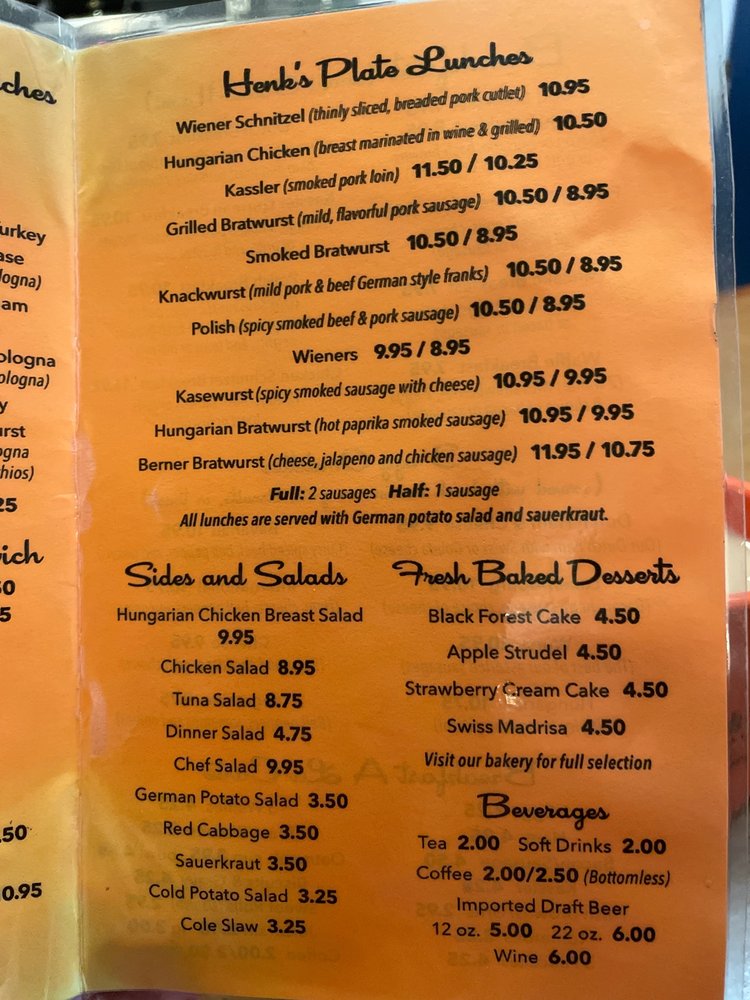 Henk's European Deli & Black Forest Bakery Menu (Update 2025)